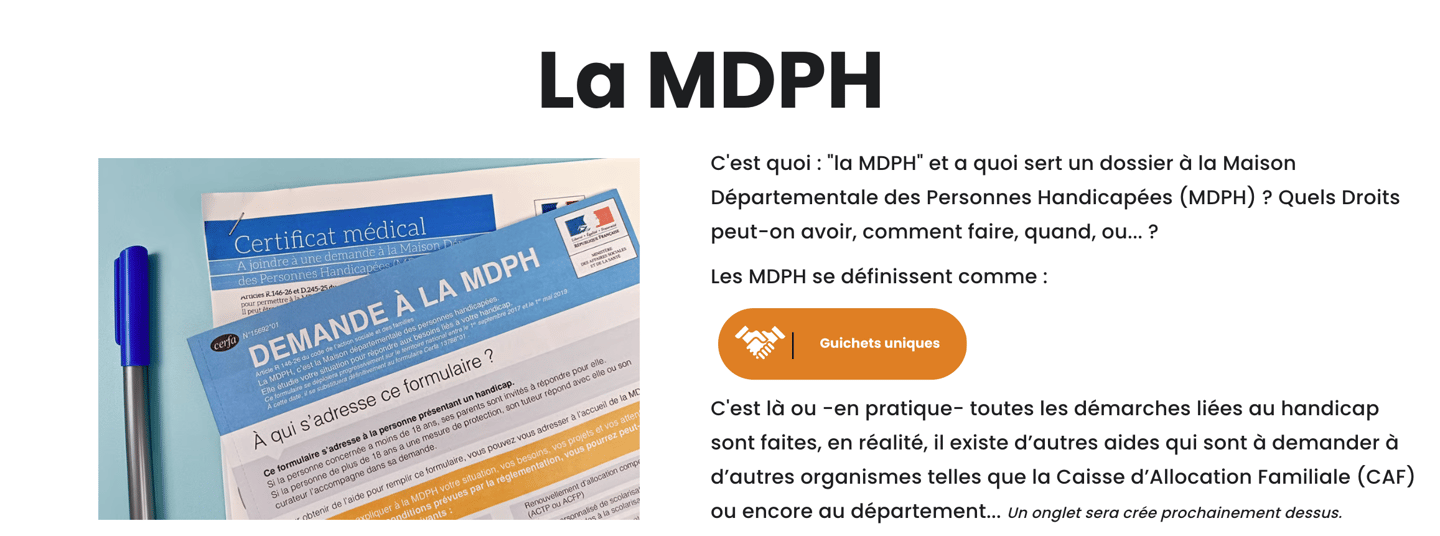 Beaucoup de MDPH ne propose pas de téléservice, il faut donc utiliser un dossier papier. Pour éviter de l'imprimer, vous pouvez le récupérer dans des points : la MDPH, certaines mairies, CCAS...