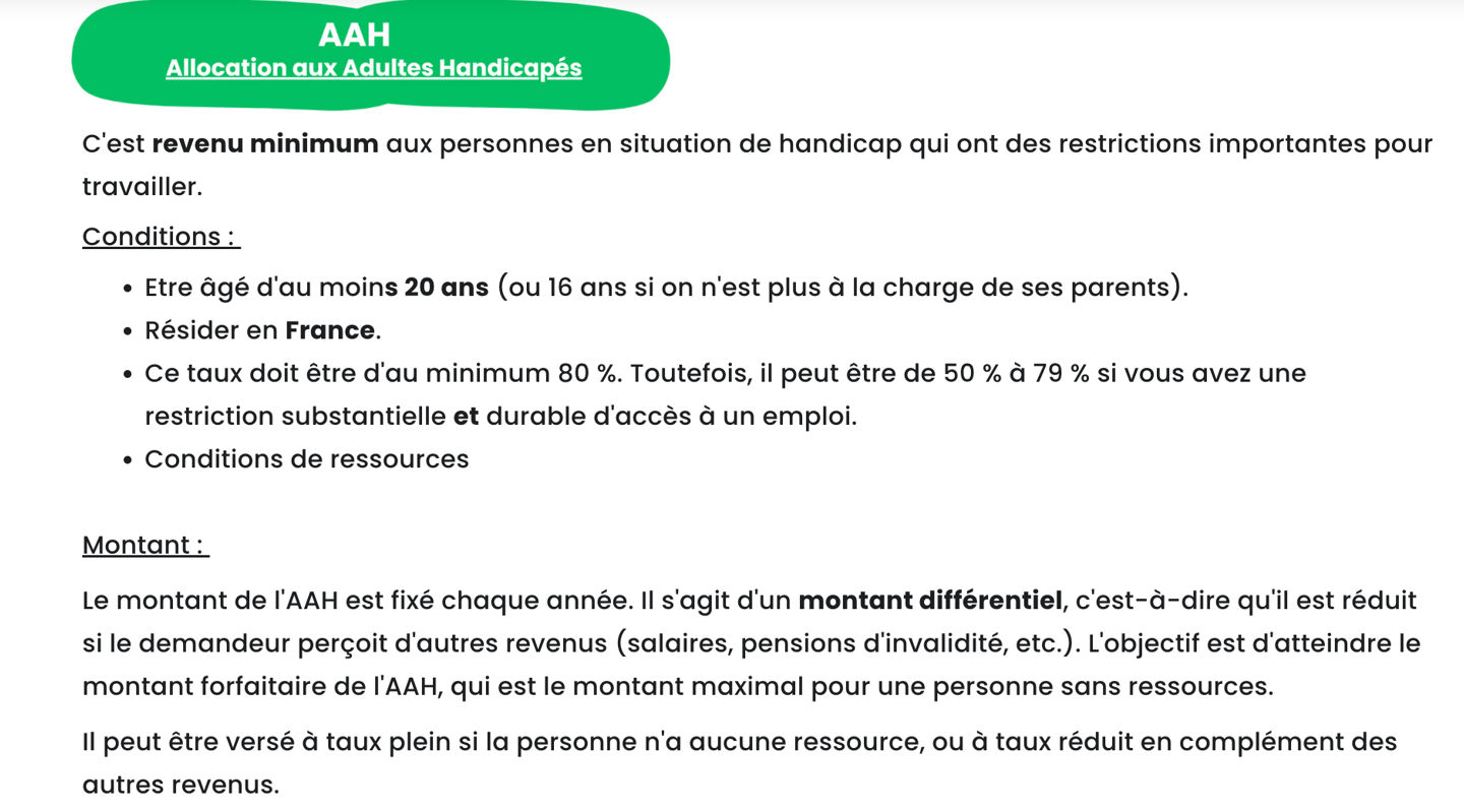 On s’appuie sur ce qu’on appelle le taux d’incapacité, autrement dit on prend compte -en pratique dans la réalité, les choses sont diffèrentes...- sur les difficultés et besoins des personnes.