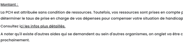 Lors de l'examen des dossiers, on dresse un Plan Personnalisé de Compensation (PCP) qui vise à dresser la liste des aides et prestations correspondant aux besoins des personnes auxquelles on va attribuer.