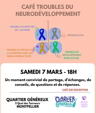 Le tout est conçu par et pour les personnes concernées par les Troubles du Neurodéveloppement grâce à l'engagement bénévole des membres de l'Association.