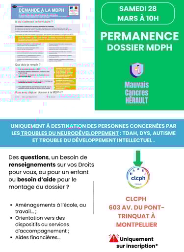 Aide personnalisée pour le dossier MDPH, Orientation pour la coordination vers les dispositifs et interlocuteurs, Défense des Droits, Soutien et écoute.
